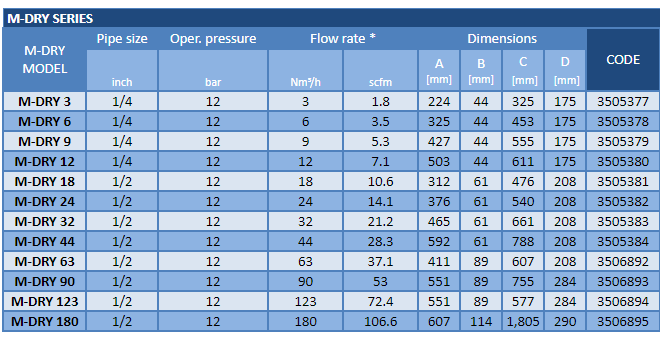 * At 7 bar, inlet dew point 35 °C, outlet dew point 15 °C.